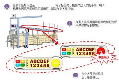 一个货架上存在着很多的仓位,仓库人员将如何知道在哪个仓位拿取多少的物料呢?电子货架仓位指示灯存在两种方案,普通的仓位指示灯是三色灯,由红、绿、黄三色指示灯组成,在无拣货需求的情况下仓位指示灯为绿色,当仓位存在拣货需求时,指示灯将变成红色,仓库人员在亮红的仓位重获取到制定数量的物料后,通过MES系统PDA扫描后,指示灯恢复绿色。另一种方案是LED显示屏,在无需求的状态下,仓位的LED显示屏为灰色不亮灯状态,显示屏显示当前仓位的物料存放状况,包括物料代码、物料名称、数量等信息,当仓位存在拣货需时,LED显示屏显示绿色亮起,并显示拣货需求数量,仓库人员根据LED灯光及拣货信息提示进行物料拿取,在通过MES系统 PDA扫描后,LED亮灯关闭。