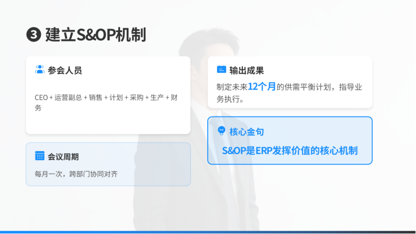 这是ERP发挥价值的核心机制。很多企业ERP用不起来,就是缺少这个会议机制。